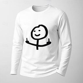 Муж. Забавный сленг Футболка Длинный рукав Футболка 3D печать Вырез под горло Рубашка Мода Повседневные Классический Для улицы Повседневные Светло-синий Черный Белый Лето Весна Все сезоны Одежда S M