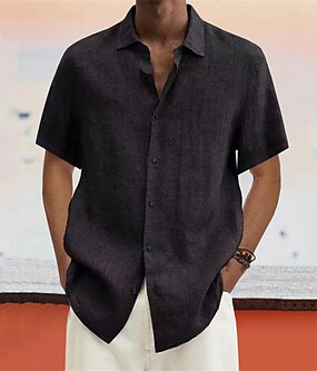 Муж. Рубашка льняная рубашка Летняя рубашка Одежда для пляжа Кнопка рубашка Полотняное плетение Отпуск Кьюриз Черный Белый Розовый Темно синий С короткими рукавами Воротничок Лето Весна Одежда