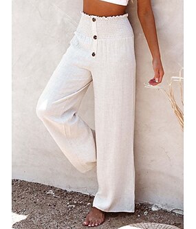 Жен. Широкие Чино Мода Уличный стиль Полная длина Завышенная Полотняное плетение Эластичный пояс удобный Мягкий Удобный Слабоэластичная на открытом воздухе Для улицы Черный Белый Морской синий
