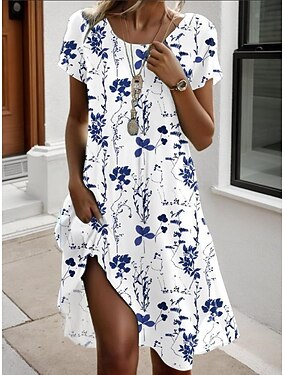 Жен. Платье средней длины Платье-футболка Платье A-силуэта Летнее платье Отпуск На каждый день Пляжный стиль Свидание Летнее платье Стандартный Цветочный принт Графика С короткими рукавами
