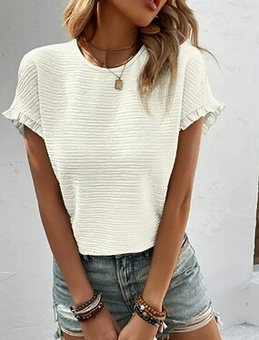 женская футболка элегантная модная повседневная с оборками короткий рукав обычные топы круглый вырез повседневная белая розовая хаки лето весна осень