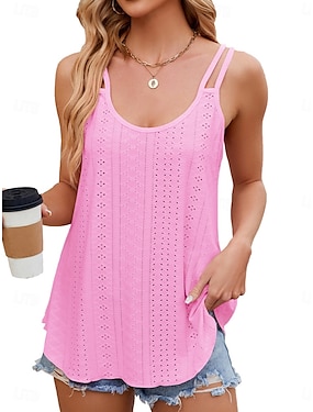 Женская майка-бретелька Однотонная стильная повседневная безрукавка с U-вырезом Обычные топы Ежедневные Глазки Белый Желтый Розовый Вино Лето
