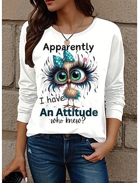 Тениска для женщин с длинным рукавом круглый вырез длинный рукав туника повседневная печать обычные топы ежедневная белая синяя фиолетовая хаки весна осень предосень