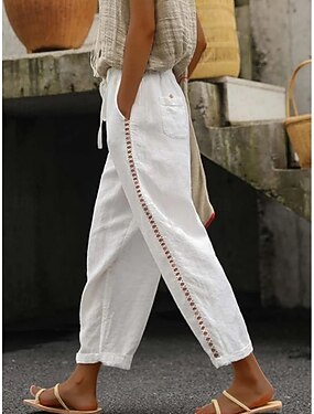 Жен. Штаны Чино Мода Уличный стиль По щиколотку Завышенная Полотняное плетение Кружева Карман Эластичный пояс удобный Мягкий Удобный Слабоэластичная на открытом воздухе Для улицы