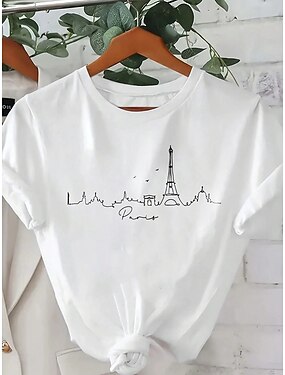 Жен. Футболка Хлопчатобумажную рубашку Буквы На каждый день С короткими рукавами Круглый вырез Обычные топы Повседневные С принтом Черный Белый Лето