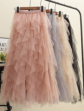 Жен. Юбки Качеля Юбки из марли Мода На каждый день Макси Со стандартной талией Подол Однотонный Неровная кромка Слабоэластичная Отпуск Для улицы Абрикосовый Черный Белый Розовый Весна Полиэстер