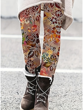 Жен. Брюки Леггинсы Уютные леггинсы Отпуск Винтаж Уличный стиль По щиколотку Средняя талия Цветочный принт Графика Цветы Эластичная талия С принтом удобный На открытом воздухе Удобный Эластичная
