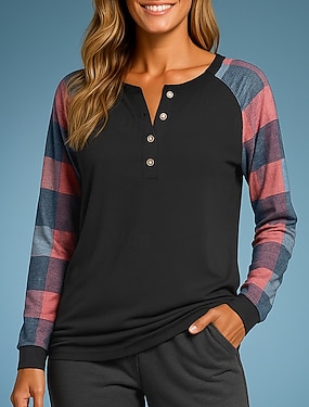 Жен. Свитер-свитшот Повседневные топы Длинный рукав Верхняя часть Одежда для спорта и отдыха Осень Клетки Мода На открытом воздухе Путешествия Спортивная одежда Спортивная одежда Черный Белый