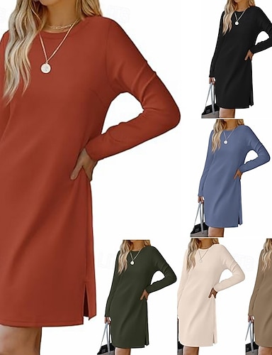 Жен. Платье средней длины Повседневное платье Платье-футболка Мода Современное на открытом воздухе Повседневные На выход Стандартный Полотняное плетение Длинный рукав Вырез под горло