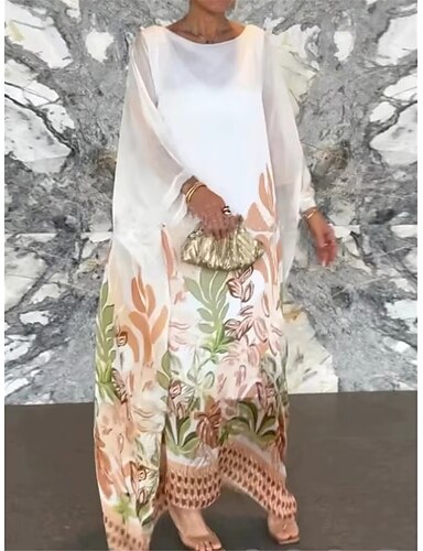 Жен. Длинное платье Платье-футболка Сарафан Платье прямого кроя Летнее платье Богемия Для вечеринок Праздники Пляж Стандартный Цветочный принт Винтаж С короткими рукавами Вырез под горло Белый