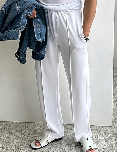 Муж. Штаны Спортивные штаны прямого кроя Брюки со складками Карман Кулиска Эластичная талия Полотняное плетение Комфорт Для спорта и активного отдыха Повседневные Мода На каждый день Черный Белый