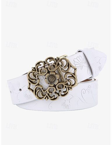 женский красный кожаный ремень с винтажной цветочной резной пряжкой – аксессуар в стиле вестерн-бохо