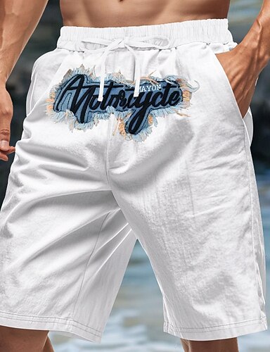 Муж. Шорты Льняные шорты Летние шорты Пляжные шорты Вышивка Кулиска Эластичная талия Полотняное плетение Комфорт Дышащий Длина колена на открытом воздухе Повседневные Пляж Мода Хип-хоп Черный Белый