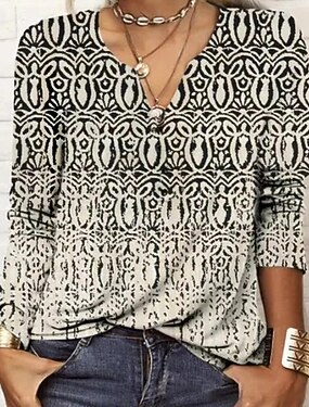 Жен. Футболка Цветочный принт Элегантный стиль Винтаж Мода Длинный рукав V-образный вырез Обычные топы Повседневные На выход выходные Пэчворк ушко С принтом Белый Розовый Синий Зеленый Лето Весна