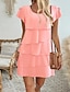 Жен. Мини-платье Коктейльные платья Свадебное платье для гостей Шифоновые платья Многоярусное платье Элегантный стиль Для вечеринок Свидание На выход Стандартный Чистый цвет С короткими рукавами