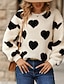 Жен. Пуловер Толстовка С сердцем Графика Геометрический принт Мода На каждый день Длинный рукав Вырез под горло Круглый вырез Обычные топы Для улицы На каждый день Повседневные С принтом