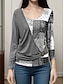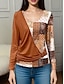 Жен. Блуза Огурцы Стиль На каждый день Длинный рукав Вырез под горло Обычные топы Повседневные Пэчворк С принтом Оранжевый Коричневый Зеленый Серый Весна Осень Зима