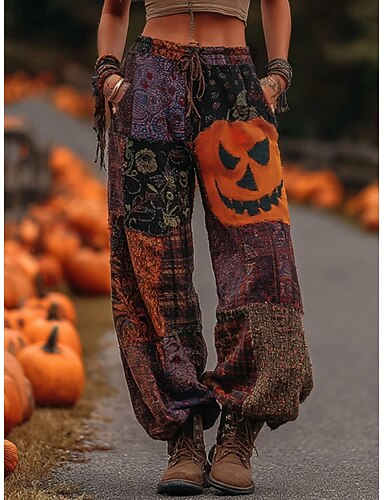 Жен. Широкие Брюки Винтаж На каждый день Полная длина Нормальная Тыква Кулиска Эластичная талия С принтом удобный Воздухопроницаемость Слабоэластичная на открытом воздухе Отпуск Для улицы Лиловый