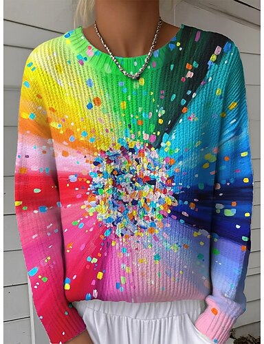 Жен. Вязаная ткань Пуловер Повседневные На каждый день Графика Градиент цвета Рельефный узор Вырез под горло Трикотаж С принтом Длинный рукав Обычные топы Вязать на открытом воздухе выходные