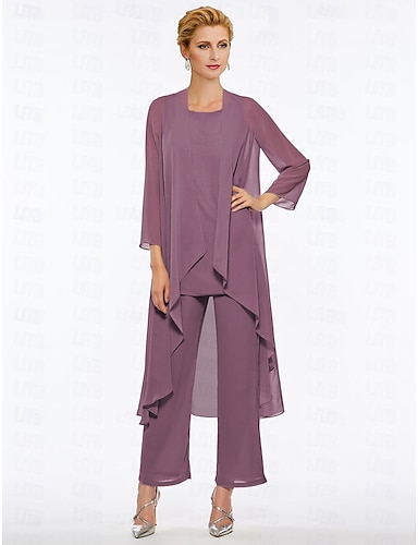 Костюм из трех частей для матери невесты элегантный плюс размер длина в пол шифон без рукавов включен пиджак однотонного цвета чтобы произвести впечатление