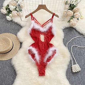 Дед Мороз Mrs.Claus Нижнее белье Babydoll Боди Тедди Жен. Сетка С кружевами Непослушный Необычная ночная рубашка Взрослые Рождество Новый год Для вечеринок Домашняя одежда