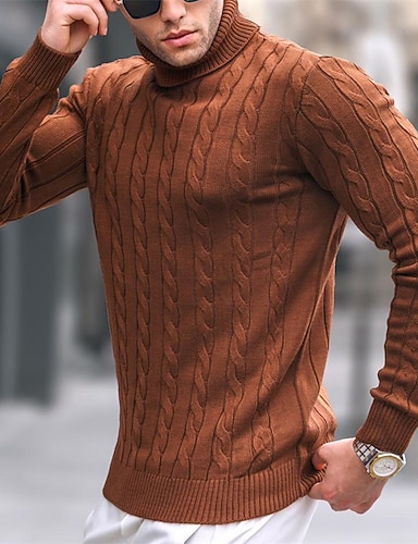 Муж. Свитер с высоким воротом Пуловер Свитер Укороченный свитер Рельефный узор Вязать Обычные топы Вязанные Полотняное плетение Хомут Современный современный Офис На каждый день Одежда Зима