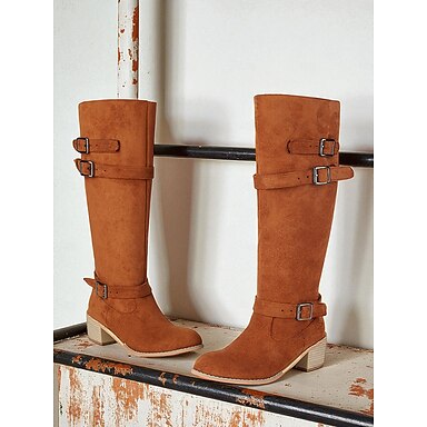 Женские светло-коричневые сапоги до колена – сапоги из искусственной замши с пряжкой на ремешке и массивным каблуком для повседневной носки и осенних нарядов