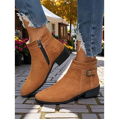 Женские ботильоны из искусственной замши с боковой молнией и пряжкой – удобные повседневные ботильоны для осенних прогулок, прогулок в саду и поездок на выходные