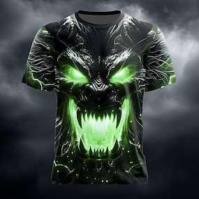 Halloween Муж. 3D-печати 3D Монстр Футболка С короткими рукавами Футболка 3D печать Вырез под горло Рубашка преувеличены Оригинальный рисунок Ужас Для вечеринок Для улицы Праздники