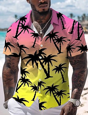 Муж. Кокосовая пальма Тропические растения Рубашка Гавайская рубашка Рубашка Алоха С короткими рукавами Рубашка Отложной Мода Гавайский Оригинальный рисунок на открытом воздухе Для улицы Повседневные
