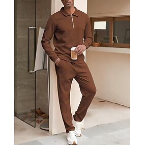 Муж. Спортивное поло Поло с молнией на четверть Для улицы Отпуск Четверть молния Длинный рукав Мода Классический Сплошной цвет Карман Весна & осень Стандартный Бордовый Зеленый Темно-Серый Кофейный
