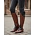 женские коричневые сапоги в стиле вестерн с пряжками и высоким коленом - винтажный стиль, с прочной подошвой для активного отдыха и повседневной носки