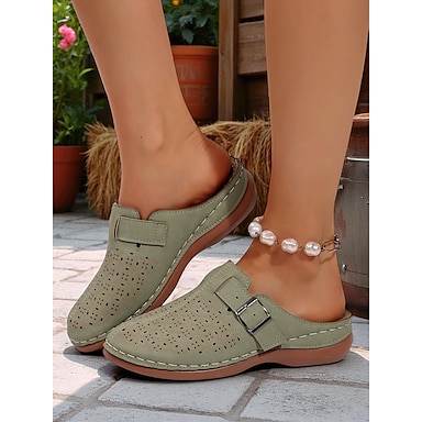 Женские зеленые перфорированные мюли без застежек, удобная повседневная обувь с пряжкой, идеально подходит для повседневной носки, сада и путешествий.