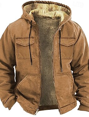Муж. Толстовка Толстовка с капюшоном на молнии Толстовка из флиса Толстовка с капюшоном на флисовой подкладке Коричневый Хаки Капюшон Полотняное плетение Пэчворк Цветовые блоки