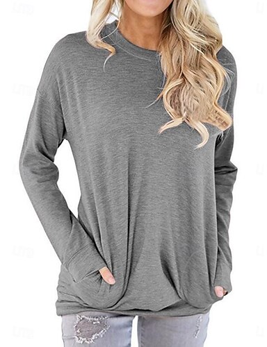 Жен. Толстовка с капюшоном и пуловером Полотняное плетение Уличный стиль На каждый день Длинный рукав Капюшон Обычные топы Для улицы Праздники Карман Черный Зеленый Цвет хаки Серый Осень Зима