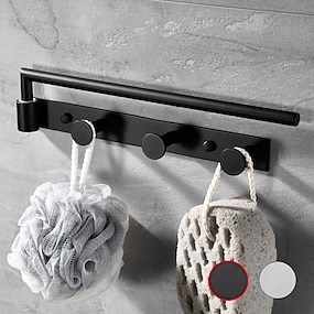 многофункциональная вешалка для полотенец с крючками для одежды самоклеящаяся полка для ванной комнаты нержавеющая сталь матовая серебристая и черная 1шт
