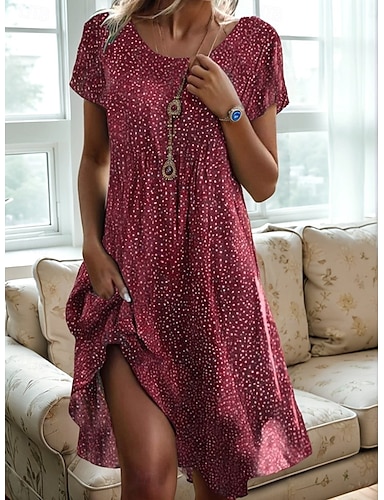 Элегантное вечернее миди-платье для женщин с круглым вырезом коротким рукавом свободного кроя летнее платье повседневное обычная посадка цветочный графический рисунок красный синий фиолетовый зеленый