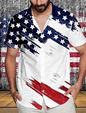День независимости США Муж. Флаг Американский флаг Кнопка рубашка Футболки с принтом С короткими рукавами На каждый день Отпуск Повседневные Для вечеринок Лето Отложной Рубашки с воротником