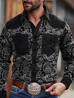 Муж. Ковбой Западная рубашка Кнопка рубашка Ковбойская рубашка Длинный рукав Винтаж Западный Повседневные Праздники Осень Зима Весна лето Отложной Рубашки с воротником 3D печать Черный