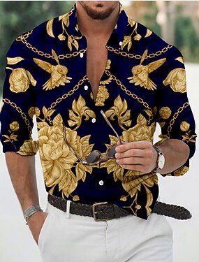 Муж. Цветочный принт Цепи Печать Рубашка Кнопка рубашка Длинный рукав Винтаж Мода Оригинальный рисунок Повседневные Праздники На выход Весна лето Отложной 3D печать Кнопка вниз