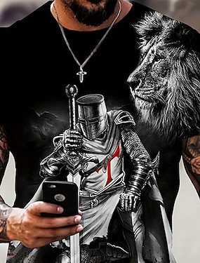 Муж. Графика тамплиеры Футболка христианские футболки С короткими рукавами Футболка 3D печать Вырез под горло Рубашка Винтаж Мода Оригинальный рисунок на открытом воздухе Повседневные Спорт