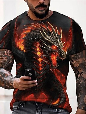 Муж. Животное Дракон Футболка Графический Тис С короткими рукавами Футболка 3D печать Вырез под горло Рубашка Оригинальный рисунок На каждый день на открытом воздухе Отпуск Повседневные