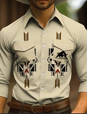 Муж. Этно Графические принты Винтаж Рубашка Западная рубашка Ковбойская рубашка Длинный рукав Мода Уличный стиль Оригинальный рисунок на открытом воздухе Повседневные Наступила зима Отложной С принтом
