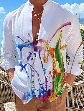 Муж. Градиент Рубашка Кнопка рубашка Длинный рукав Мода Оригинальный рисунок На каждый день на открытом воздухе Отпуск Повседневные Осень Весна лето Воротник-стойка С принтом