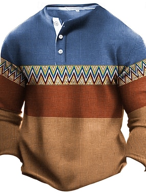 Муж. Вафельная рубашка Henley Графика В клетку Контрастных цветов Хенли Одежда 3D печать на открытом воздухе Повседневные С короткими рукавами кнопка Мода Оригинальный рисунок Стиль Винтаж