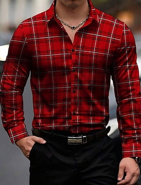 Муж. В клетку Западная рубашка Кнопка рубашка Ковбойская рубашка Длинный рукав На каждый день на открытом воздухе Отпуск Повседневные Осень Зима Весна лето Отложной Рубашки с воротником