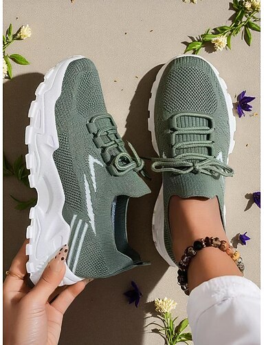 Женские зеленые кроссовки Flyknit на шнуровке – легкие дышащие кроссовки для занятий в зале, прогулок и повседневной носки