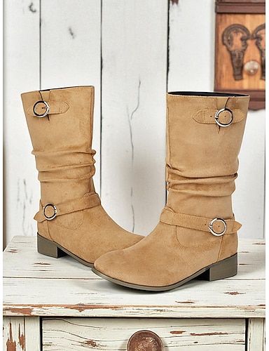 Женские сапоги до середины голени с пряжками на ремешках – зимние сапоги из винтажной замши для повседневных образов и осенней моды