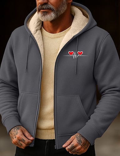 Муж. Толстовка Толстовка с капюшоном на молнии Черный Белый Капюшон Графические принты Карман Для занятий спортом Повседневные Праздники Полиэстер Уличный стиль Классический На каждый день Весна Осень