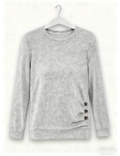 Жен. Блуза Сплошной цвет Стиль На каждый день Длинный рукав Вырез под горло Обычные топы Повседневные Пэчворк Пуговицы Черный Красный Темно синий Серый Весна Осень Зима